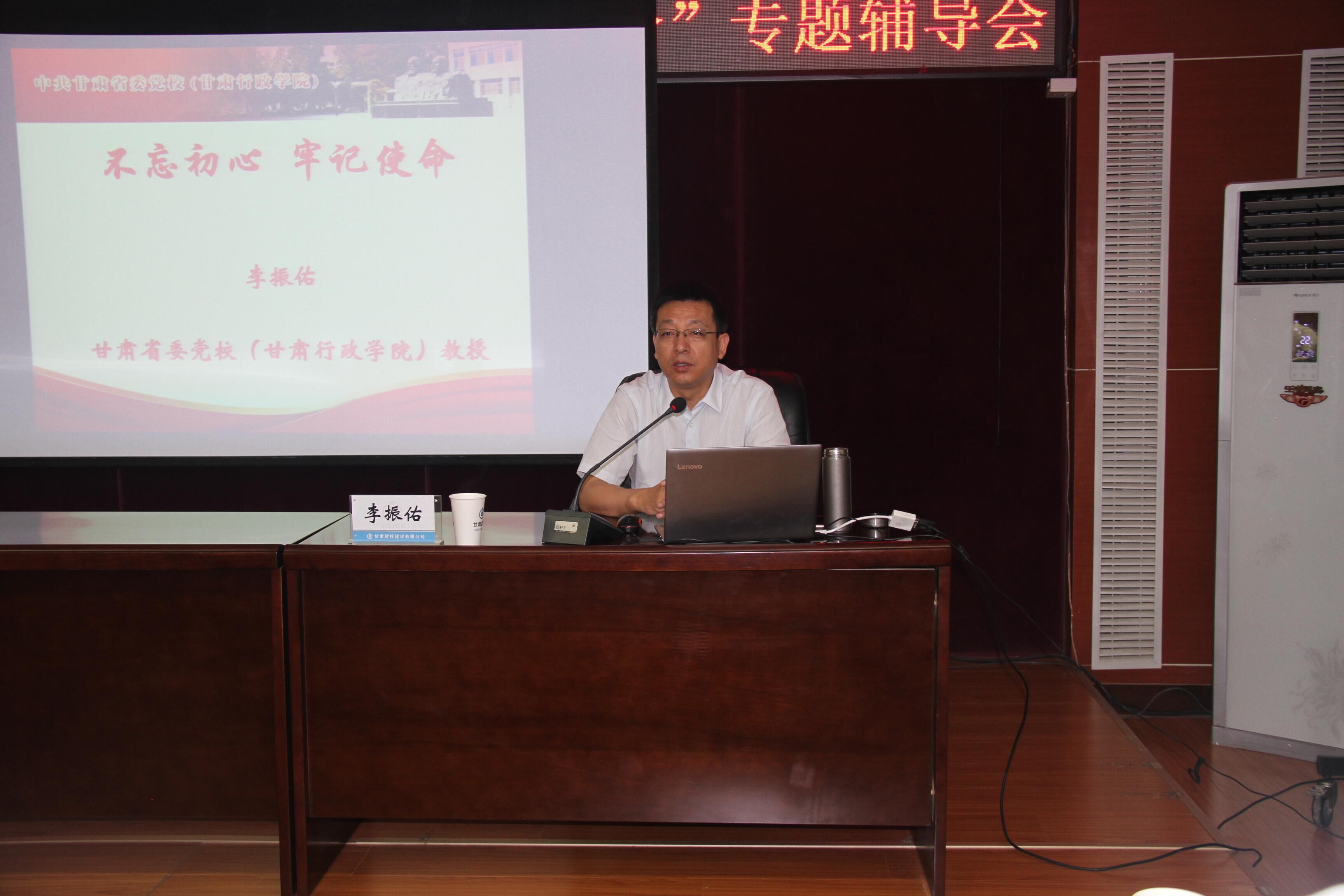為扎實推進(jìn)建設(shè)公司“不忘初心、牢記使命”主題教育,深化全司兩級領(lǐng)導(dǎo)干部對主題教育的安排部署和重大意義的理解領(lǐng)會,切實增強(qiáng)主題教育的針對性和實效性。6月21日,建設(shè)公司邀請甘肅省委黨校李振佑教授,以“不忘初心、牢記使命”為主題進(jìn)行專題講座輔導(dǎo)。
